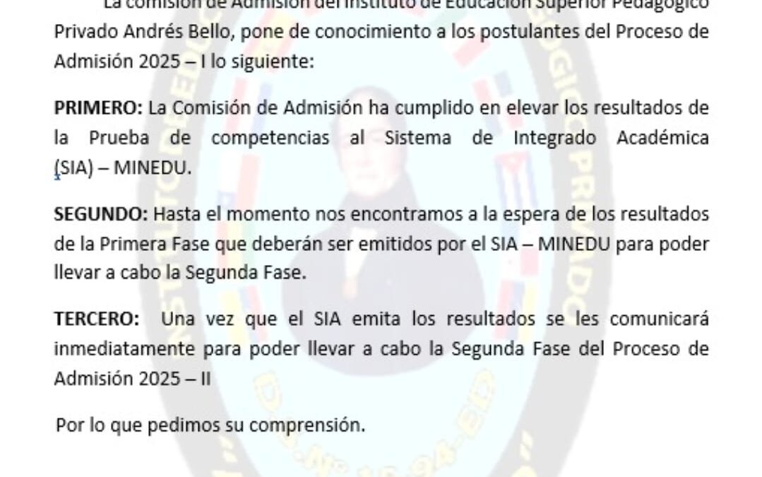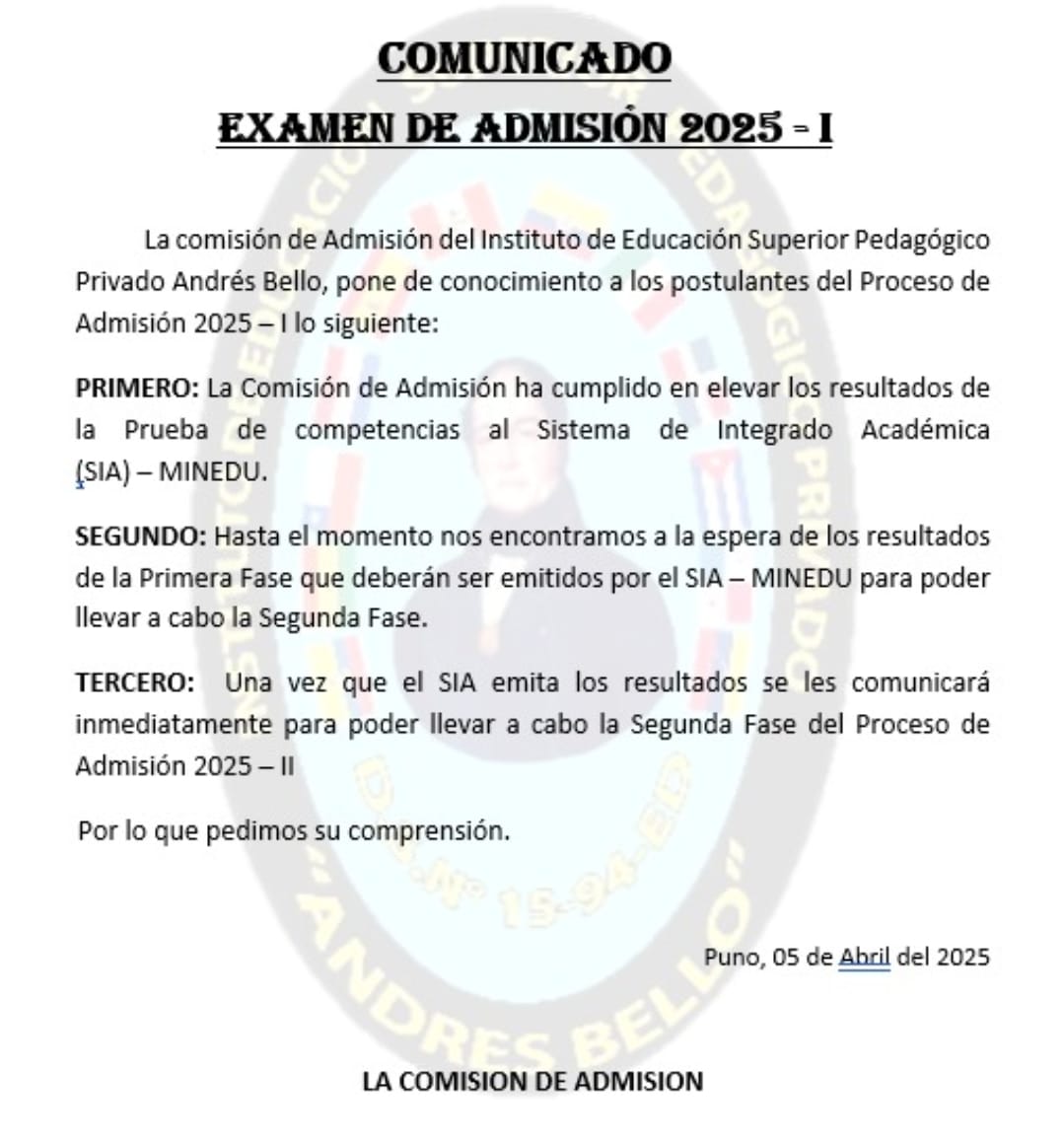 COMUNICADO EXAMEN DE ADMISIÓN 2025 – I por admin | Abr 7, 2025 | comunicados, noticias | 0 Comentarios Enviar comentario Cancelar la respuestaTu dirección de correo electrónico no será publicada. Los campos obligatorios están marcados con *Comentario * Nombre * Correo electrónico * Web Guarda mi nombre, correo electrónico y web en este navegador para la próxima vez que comente.
